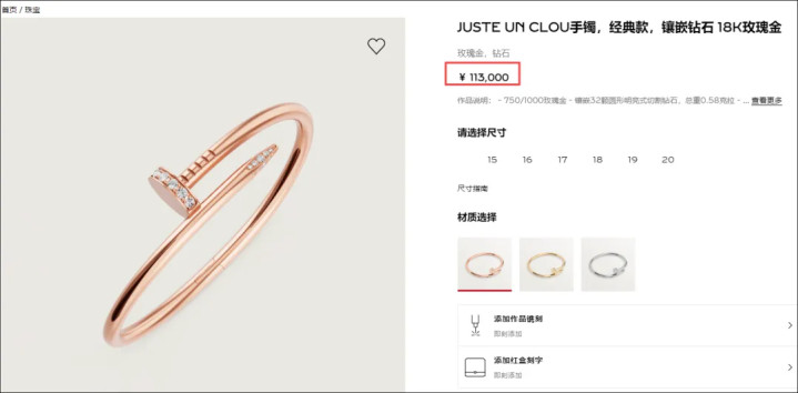 该品牌官网显示,这款手镯售价113000元。